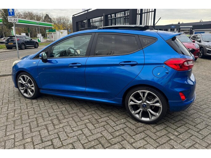 Deze Ford Fiesta staat voor je klaar. Een geweldige, nog jonge occasion die goed is voor gemakkelijk nog een tonnetje of twee op de teller. Hij heeft een benzinemotor en een handgeschakelde zesversnellingsbak. Koude start? Niet met de verwarmbare voorstoelen! Pittig rijden wordt nog comfortabeler dankzij de fraaie sportstoelen. Het elektrisch bediende panoramadak zorgt voor maximale lichtinval en frisse lucht in het interieur. Nooit meer koude handen of koude vingers in de auto. Stuurverwarming zorgt ervoor dat het stuur behaaglijk warm aanvoelt. Verder is de Ford uitgerust met: 17 inch lichtmetalen velgen, sportonderstel, LED-dagrijverlichting, extra getint glas, in delen neerklapbare achterbank en LED-achterlichten.