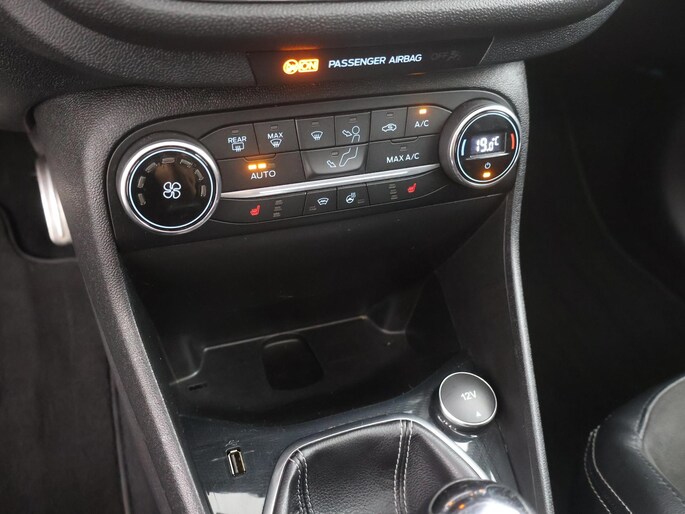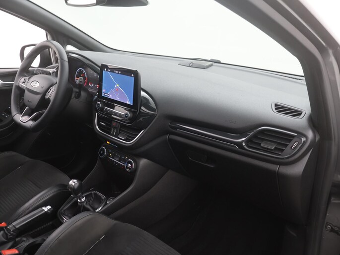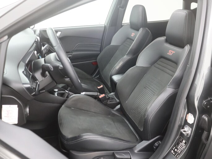Neem plaats in de cockpit, start de motor en voel het vermogen. Met deze sportieve Ford Fiesta hebt u altijd de controle. In deze auto vindt u een 1.5 turbo benzinemotor met 200pk en een handgeschakelde zesversnellingsbak. Behaaglijk onderweg zijn? Als bestuurder geniet u van de verwarmbare voorstoelen. Net als uw bijrijder! Stevig ondersteund door de Rekaro sportstoelen blijft u bij elke beweging op uw plek. Life is easy! In ieder geval met dit elektrisch bediende glazen panoramadak. Nooit meer koude handen of koude vingers in de auto. Stuurverwarming zorgt ervoor dat het stuur behaaglijk warm aanvoelt. Bij de uitrusting van deze auto horen onder meer 18 inch lichtmetalen velgen, LED koplampen, sportonderstel, halflederen bekleding, extra getint glas en in delen neerklapbare achterbank.