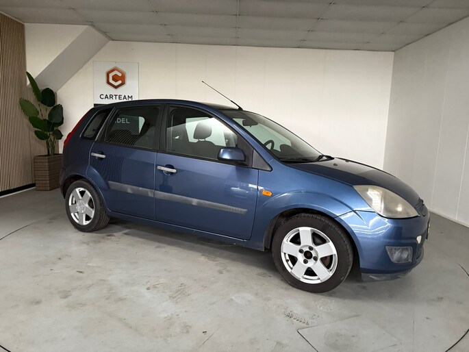 Deze Ford Fiesta komt uit 2006, werd geleverd van 05-10-2005 tot 31-12-2007. Deze originele Nederlandse personenauto staat sinds 2006 op kenteken, is voorzien van een benzine-motor, heeft een maximum vermogen van 59 kW (80 PK) en een cilinderinhoud van 1388 cc.