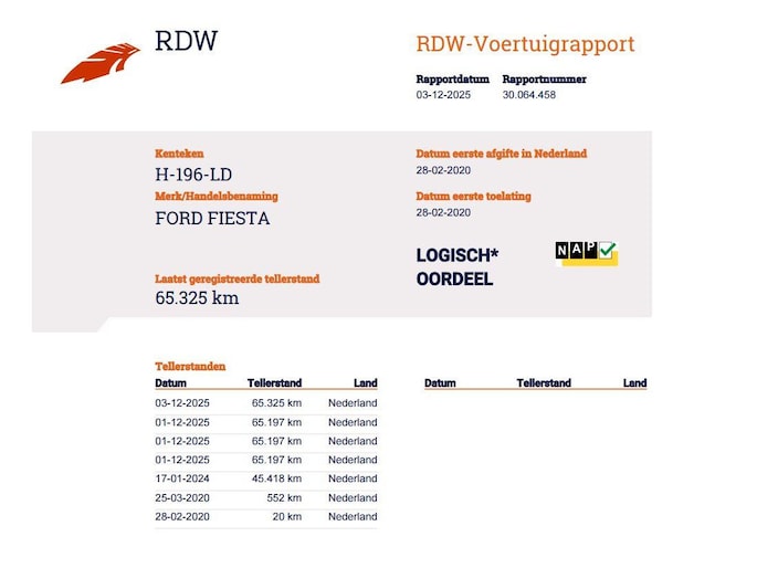 Kilometerstand gecontroleerd
