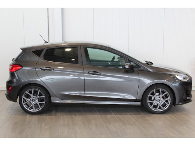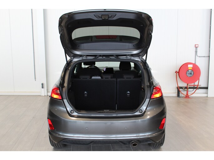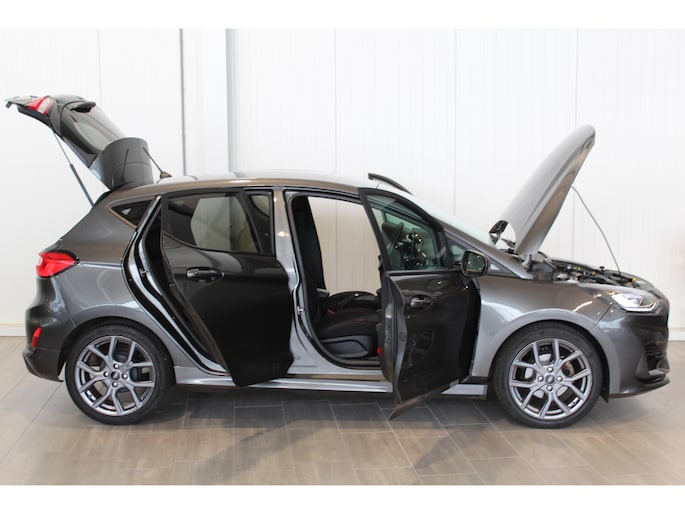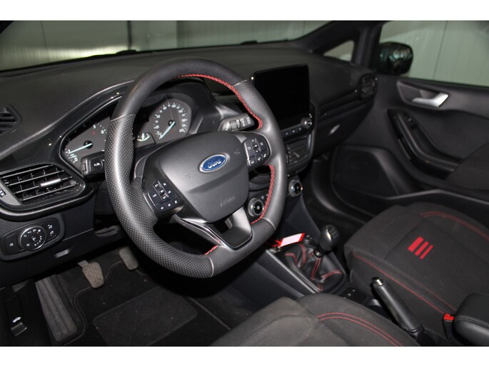 1.0-125pk EcoBoost Mild-Hybrid ST-Line. Luxe, sportieve en goed onderhouden Fiesta ! Autm. airco, Cruise control, Lane assist, 17" Lmv, Parkeersensoren Achter, Metallic lak, Navigatie by Apple/Android, LED verlichting etc.
