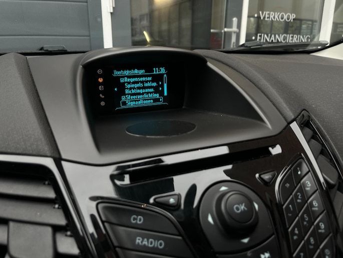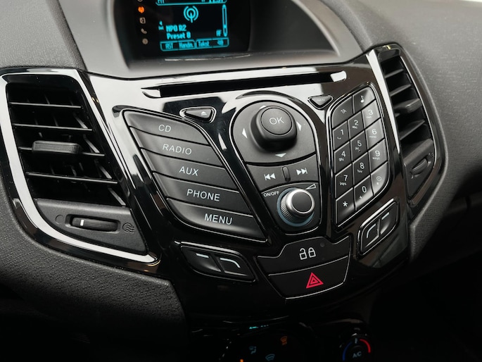 De hoorbare sensatie van het high performance audiosysteem is een ervaring op zich. De automatische airconditioning zorgt voor een prettige binnentemperatuur. Parkeerplekken worden er niet ruimer op. Maar met de aanwezige parkeersensoren krijgt u deze Ford Fiesta zonder problemen op z'n plaats. Het luxeniveau in deze Ford is niet alleen gericht op comfort, maar ook op uw veiligheid. Tal van sensoren helpen u om de omgeving in de gaten te houden. De automatisch inschakelbare verlichting zorgt dat automatisch de verlichting wordt ingeschakeld als het donker wordt, wat bijvoorbeeld in tunnels erg handig is. En de regensensor zet de ruitenwissers aan zonder dat u eraan hoeft te denken. Deze Ford is voorzien van dashboard met spraakbediening, DAB ontvangst, buitentemperatuurmeter, automatisch dimmende binnenspiegel, lederen stuur en centrale deurvergrendeling met afstandsbediening.