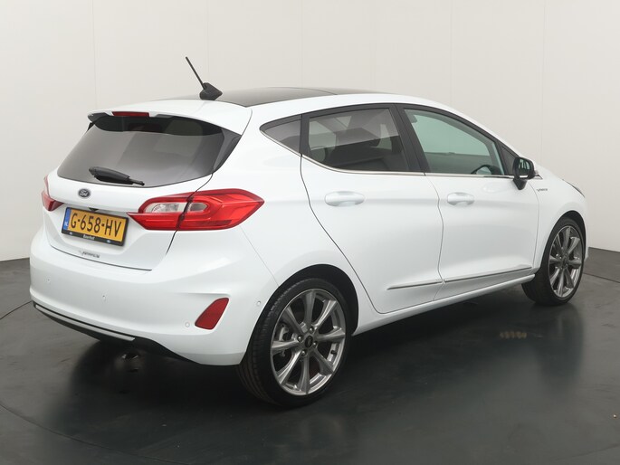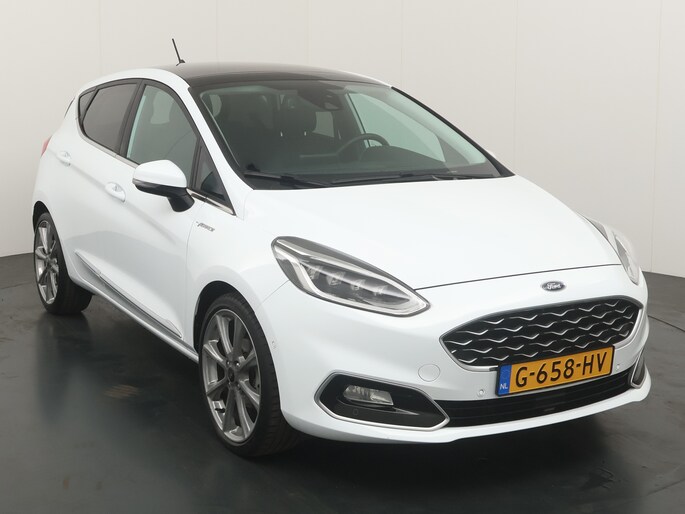 Deze Ford Fiesta Vignale uit 2019 laat zien hoe luxe en comfort perfect samenkomen in een compacte auto. Uitgevoerd in de elegante kleur Frozen White en met een kilometerstand van slechts 59.000 km, is dit een bijzonder complete en stijlvolle verschijning.