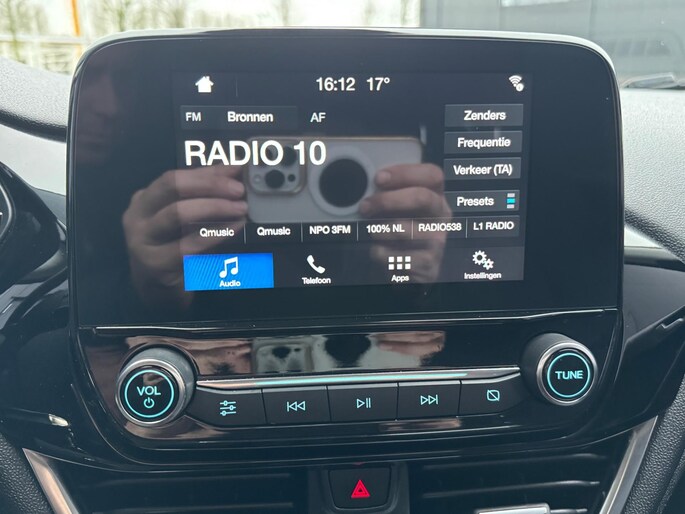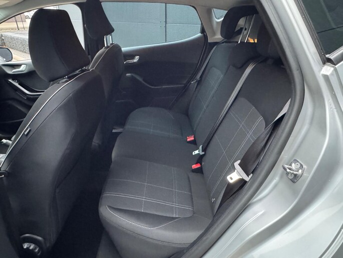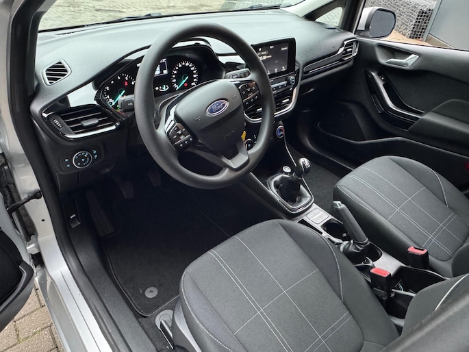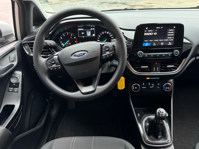 Pragmatisch en veilig als deze auto is, beschikt hij over diverse veiligheidssystemen. Het Lane-keeping systeem let constant op en waarschuwt of corrigeert als u onoplettend over de lijnen van de rijstrook gaat. Deze Ford Fiesta is voorzien van Brake Assist, die extra remkracht geeft bij een noodstop. De auto is ook uitgerust met hill hold functie en bandenspanningcontrolesysteem.