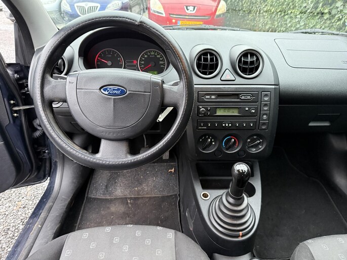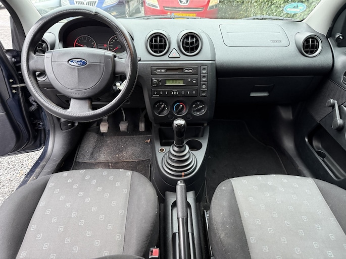 Het karaktervolle uiterlijk van de Ford Fiesta doet niets af aan het feit dat dit een comfortabele en bijzonder praktische auto is. Met de pittige benzinemotor en de handgeschakelde versnellingsbak manoeuvreert u moeiteloos door het verkeer. Ook warmtewerend glas en in delen neerklapbare achterbank zijn aan boord.