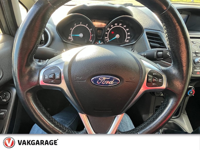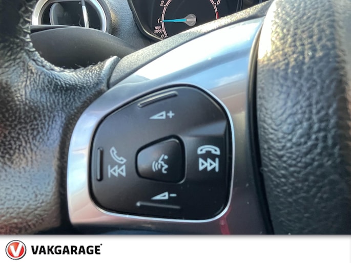 Wat wilt u onderweg horen? Er is volop keus, dankzij bluetooth. Het navigatiesysteem is met het audiosysteem gecombineerd. U kunt bij het inparkeren natuurlijk niet aan alle kanten ogen hebben. Daarom is deze Ford Fiesta voorzien van parkeersensoren! Een heerlijke egale snelheid? Even de cruise control inschakelen! Het hele jaar door zorgt airconditioning voor een prettige temperatuur. Deze Ford is voorzien van dashboard met spraakbediening, lederen stuur, centrale deurvergrendeling met afstandsbediening, boordcomputer en lederen versnellingspook.