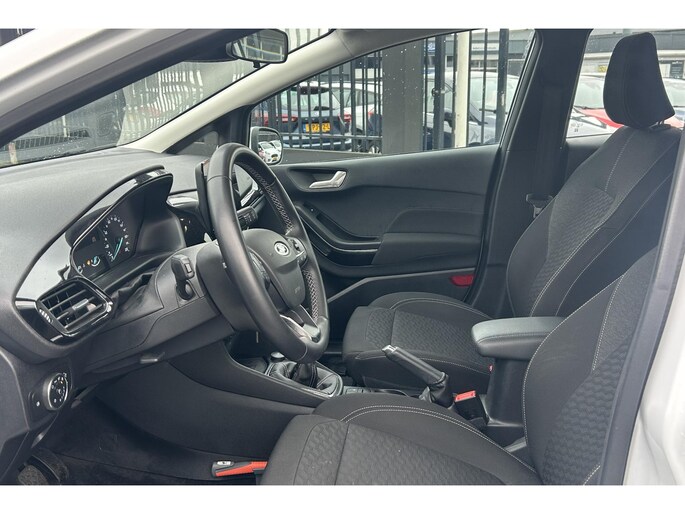 De nieuwste veiligheidssystemen komen in deze Ford Fiesta samen. Tijdens de rit heb je altijd een bijrijder, want de verkeersbord-detectie leest de borden langs de weg en projecteert ze voor je op het instrumentarium. Het Lane-keeping systeem zorgt dat je mooi binnen de lijntjes blijft. Ongemerkt buiten de rijstrook komen is er niet meer bij. Vermoeidheidsherkenning is een systeem dat met verschillende sensoren tekenen van vermoeidheid bij de chauffeur waarneemt. Deze krijgt tijdig een waarschuwing, wat ongelukken kan voorkomen. Verder is deze auto uitgerust met hill hold functie, brake assist en bandenspanningcontrolesysteem.