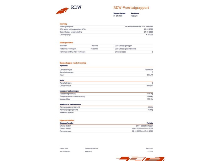 Kilometerstand gecontroleerd
