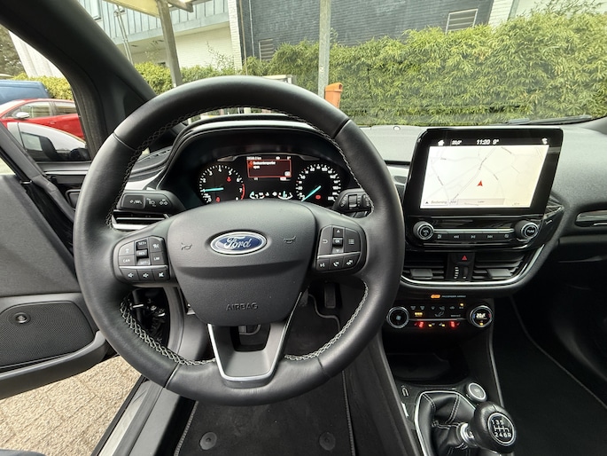 Zijn dynamische uiterlijk maakt al direct duidelijk wat voor rijervaring u van deze Ford Fiesta mag verwachten: pure sportiviteit. De kilometerstand van deze dealeronderhouden auto is laag, slechts 28588. De auto is van bouwjaar 2018. De aandrijving van deze Ford wordt verzorgd door een driecilinder benzinemotor en een handgeschakelde zesversnellingsbak. Voorin is het 's winters genieten met de verwarmbare voorstoelen voor zowel bestuurder als bijrijder. Rijden met pit? Geen punt! De sportstoelen geven steun en stevigheid! Tot de voorzieningen van deze auto behoren 17 inch lichtmetalen velgen, sportonderstel, LED-dagrijverlichting, donker getint glas achter, in delen neerklapbare achterbank en LED-achterlichten.