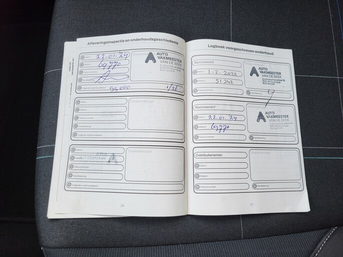 Onderhoudsboekjes: Aanwezig