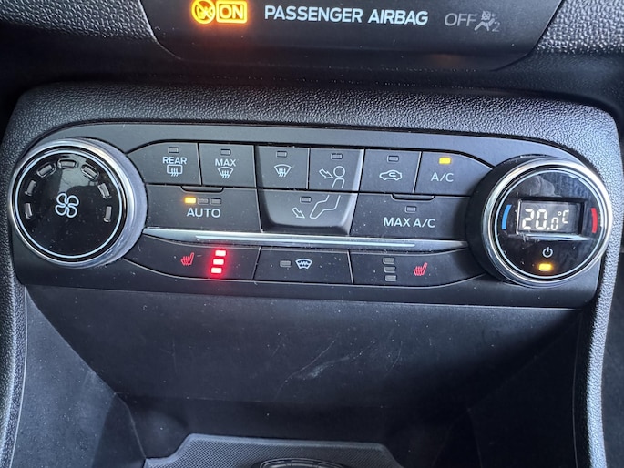 De nieuwste veiligheidssystemen komen in deze Ford Fiesta samen. Het Lane-keeping systeem let constant op en waarschuwt of corrigeert als je onoplettend over de lijnen van de rijstrook gaat. Brake assist verhoogt de remdruk in een noodsituatie zodat je sneller stil staat. De auto is ook uitgerust met dodehoekdetectie, hill hold functie en bandenspanningcontrolesysteem.