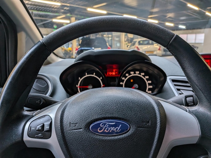 Alle technologie in de Ford Fiesta is er op gericht om uw rit veilig en gemakkelijk te laten verlopen. De aandrijving van deze Ford wordt verzorgd door een viercilinder motor en een handgeschakelde vijfversnellingsbak. Op koude dagen voelt u zich snel behaaglijk op de verwarmbare stoelen. Ook 16 inch lichtmetalen velgen, dakspoiler, extra getint glas, in delen neerklapbare achterbank en verstelbare lendensteunen zijn aan boord.