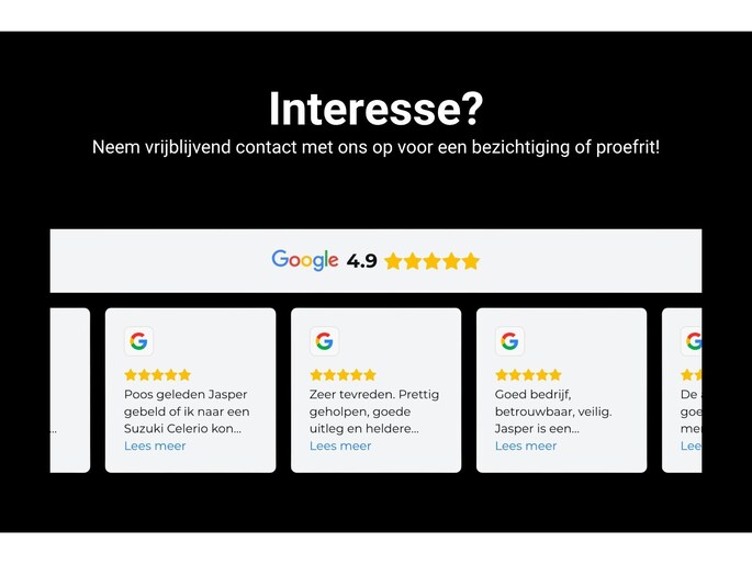 Onze auto’s worden aangeboden inclusief het 3 maanden AutoBuitenhuis huisgarantiepakket, zonder extra afleverkosten. Dit is een basisgarantie met technische controle bij binnenkomst, benodigd onderhoud, professionele reiniging van interieur en exterieur, NAP check, APK en minimaal 1/4 tank brandstof.