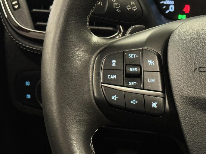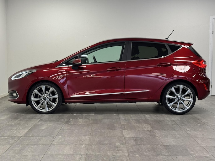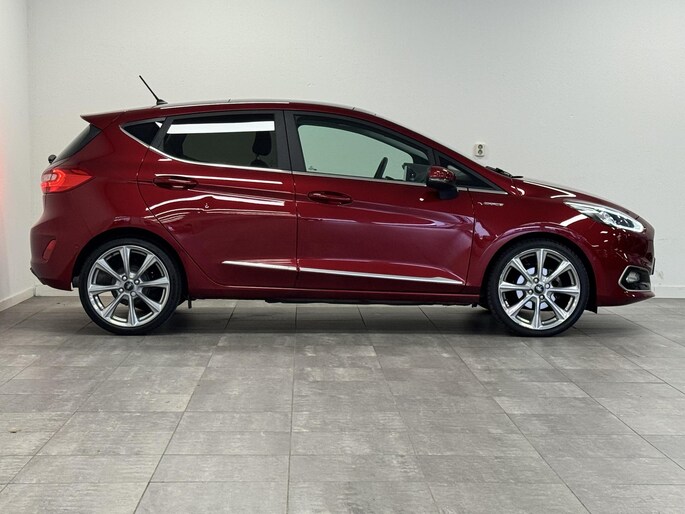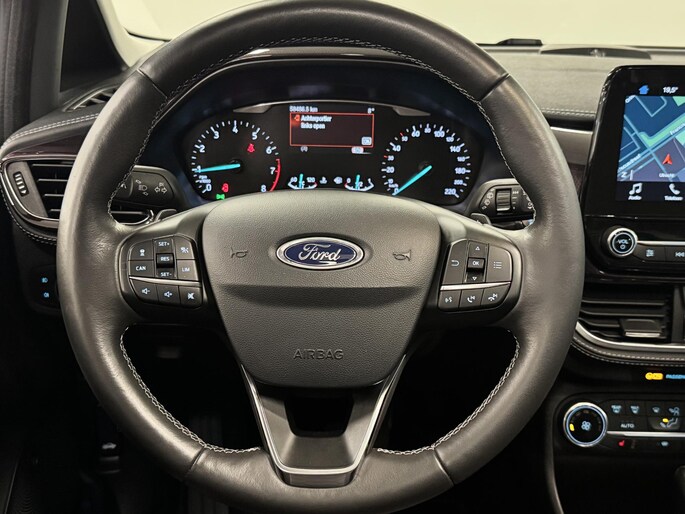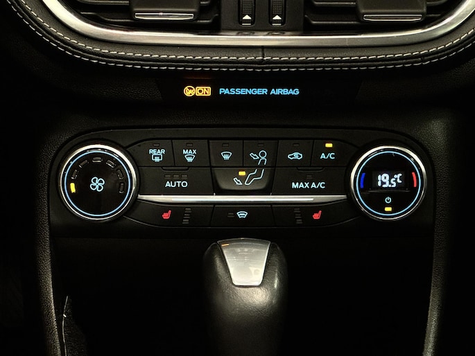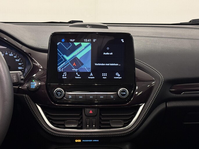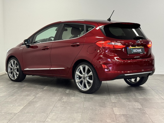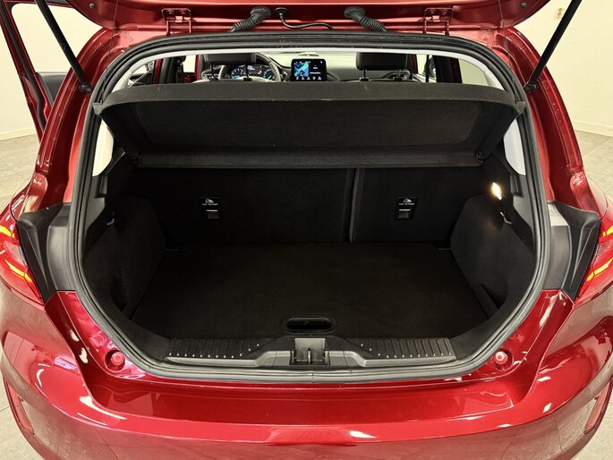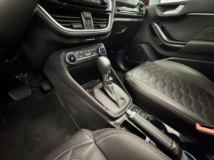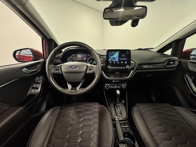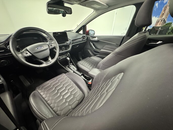 Alle technologie in de Ford Fiesta is er op gericht om uw rit veilig en gemakkelijk te laten verlopen. Hij heeft een benzinemotor en een automatische transmissie. Met zijn lederen bekleding is deze Ford comfortabel en stijlvol. In de verwarmbare voorstoelen zitten is elke keer een welkom gevoel. Chauffeur en bijrijder zitten stabiel in de scherpe bochten door de sportstoelen. Het panoramadak zorgt voor maximale lichtinval en kan worden geopend voor extra ventilatie. Al is het nog zo fris, koude handen zijn verleden tijd door het verwarmd stuurwiel. Ook is de auto voorzien van: 18 inch lichtmetalen velgen, LED-dagrijverlichting, extra getint glas, in delen neerklapbare achterbank, LED-achterlichten en verstelbare lendensteunen.