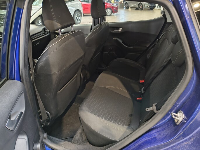 De Titanium-uitvoering geeft de Fiesta een moderne en verzorgde uitstraling, met hoogwaardige afwerking en comfortabele voorzieningen. Het interieur is voorzien van stofbekleding en de karakteristieke Titanium-details, die samen een prettige en hoogwaardige sfeer creëren.