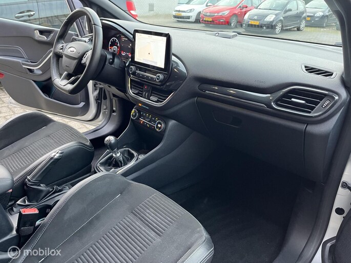 Omdat rijden een plezier mag zijn, staat deze Ford Fiesta enthousiast te glimmen in de showroom. Technisch in topconditie, strak in de lak... echt een droomauto! Met zijn benzinemotor en handgeschakelde versnellingsbak is dit een prima auto voor nog vele kilometers. Op koude en donkere dagen zijn de verwarmbare voorstoelen een uitkomst. Ziet er goed uit, die sportstoelen. Maar waar het om gaat, is de solide zit onder alle omstandigheden. Bij de rijke uitrusting horen ook 18 inch lichtmetalen velgen, Full LED koplampen, sportonderstel, halflederen bekleding, donker getint glas achter en in delen neerklapbare achterbank.