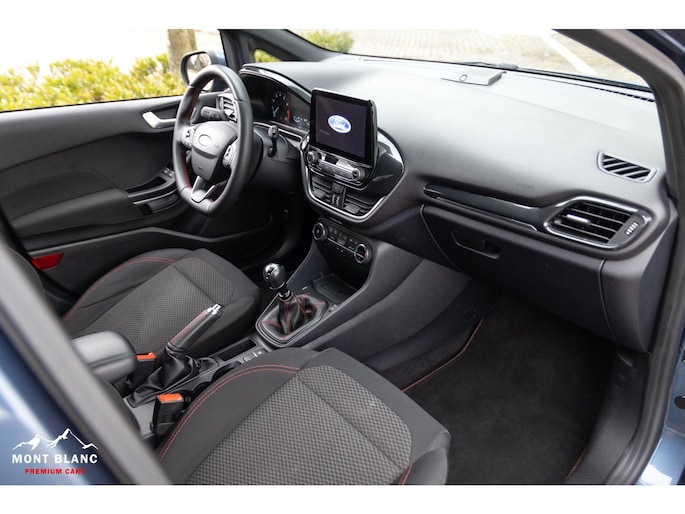 Deze Ford Fiesta 1.0 EcoBoost ST-Line uit 2020 laat zien hoe leuk én comfortabel een compacte auto kan zijn. Met 90.000 kilometer op de teller is dit een auto waar aantoonbaar netjes mee is omgegaan en die perfect is onderhouden. De frisse blauwe metallic lak in combinatie met de sportieve 17 inch velgen geeft hem een moderne en dynamische uitstraling die je niet snel over het hoofd ziet.