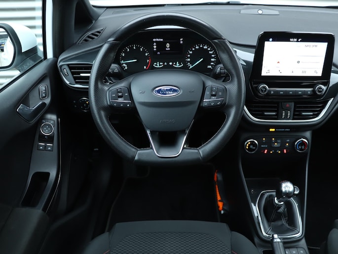 Deze keurige, volledig dealer-onderhouden Ford Fiesta ST-Line is afkomstig van de eerste eigenaar en wordt afgeleverd met 3 maanden garantie op motor en versnellingsbak, een nieuwe APK, vloeistofcontrole, reinigingsbeurt, gegarandeerde kilometerstand (NAP) en de tenaamstelling van het voertuig bij ons op locatie.