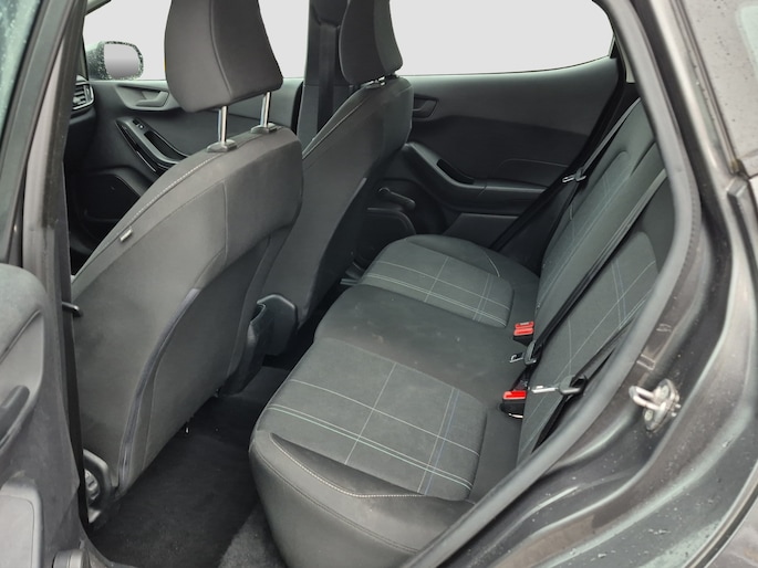 Rijden in een Ford betekent toekomstgericht de weg op gaan. Een stapje meer doen, de voorsprong pakken. Go Further, zoals ze zelf zeggen. Voor de aandrijving van deze auto zorgt een pittige benzinemotor in combinatie met een handgeschakelde zesversnellingsbak. In deze auto profiteert u onder andere ook van: LED-dagrijverlichting en in delen neerklapbare achterbank. Gemak dient de mens. Dankzij de spraaksturing bedient u de belangrijkste functie met uw stem. Oliepeil, bandenspanning, sloten en andere functies zijn via een speciale app overal te checken dankzij Connected Services. Te weinig afstand tussen u en de achterligger? De sensoren registreren het direct en de achteropkomend verkeer waarschuwing geeft een signaal. De DAB-ontvanger zorgt voor een ruime keuze uit digitale radiozenders en een kristalheldere geluidsweergave. Cruise control houdt automatisch de ingestelde snelheid vast. Zo kunt u zich volledig op het verkeer concentreren. Deze Ford is voorzien van airconditioning, centrale deurvergrendeling met afstandsbediening, boordcomputer en verstelbaar stuur. In de Ford Fiesta heeft uw veiligheid en die van uw omgeving prioriteit. Het Lane-keeping systeem garandeert dat u zich niet onverhoeds buiten de lijnen van de rijstrook begeeft. Als elke meter en elke seconde telt, wilt u dat het remsysteem maximaal presteert. Met de Brake Assist bent u daar zeker van. De veiligheid van deze auto wordt verder verhoogd door hill hold functie en bandenspanningcontrolesysteem. Als u meer wilt weten over deze Ford, dan vertellen we u dat graag. Belt of mailt u ons vandaag nog?