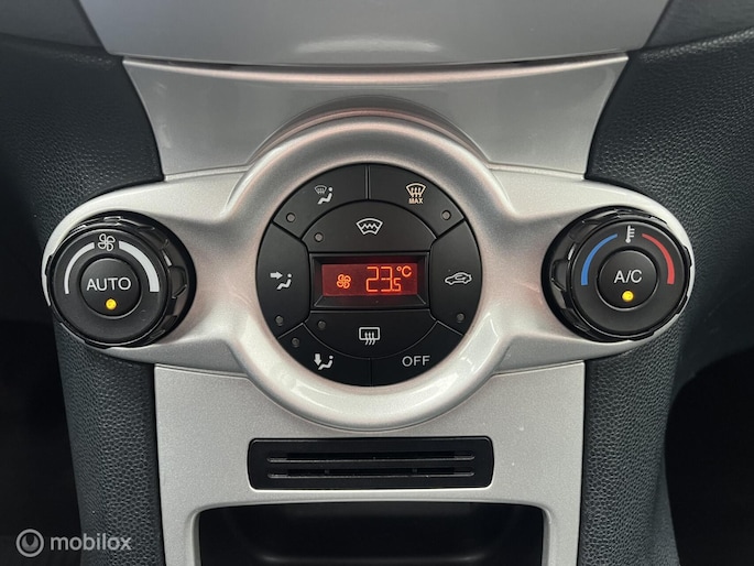 Een nette Ford Fiesta met opties zoals: Climate control, Stoelverwarming, Multifunctioneel stuurwiel, Elektrische ramen, Elektrisch verstelbare buitenspiegels, Centrale vergrendeling met afstandsbediening