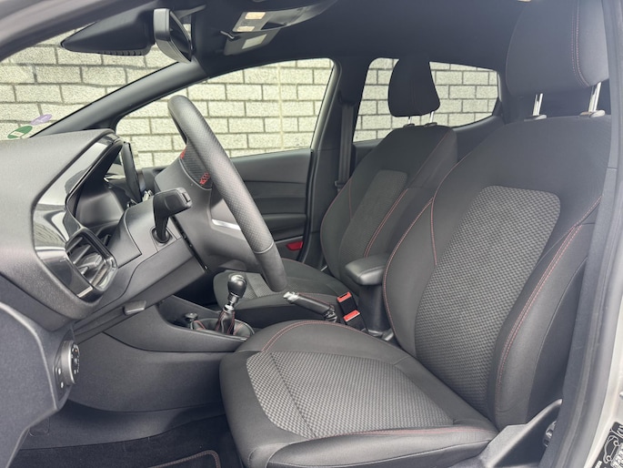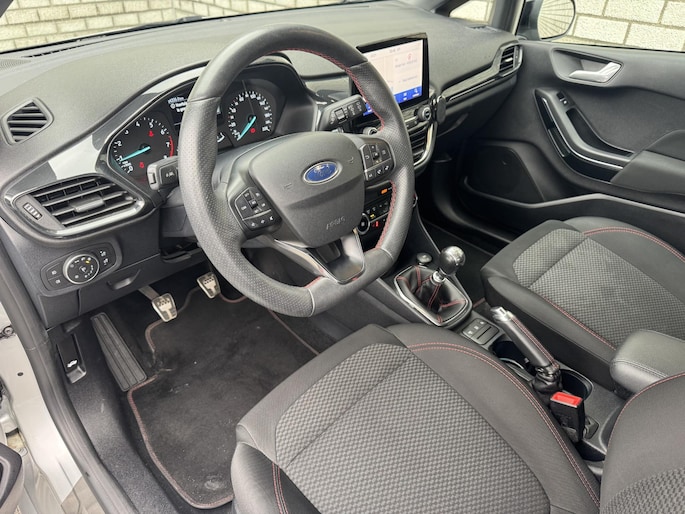 Een zuinige motor met pittige prestaties. Een uitstekende wegligging. Alle veiligheidsvoorzieningen die u van een moderne auto mag verwachten. Deze Ford Fiesta is een compacte hatchback met de eigenschappen van een auto uit een hogere klasse. Met zijn benzinemotor en handgeschakelde zesversnellingsbak is dit een prima auto voor nog vele kilometers. De strakke sportstoelen hebben niet alleen de looks, maar bewijzen ook hun functie als u wat meer vraagt in de uitdagende bochten. Natuurlijk behoren 17 inch lichtmetalen velgen, sportonderstel, LED-dagrijverlichting, in delen neerklapbare achterbank en LED-achterlichten ook tot de uitrusting van deze complete auto.