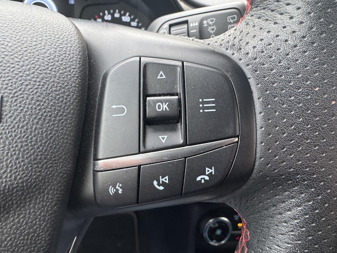 Uw smartphone is tegenwoordig de sleutel tot heel veel. Ook voor deze auto. Remote services, noemen we dat. Waar u ook bent, contact houden is een eitje. Onder alle omstandigheden een volmaakt geluid onderweg: het high performance audiosysteem zorgt ervoor. Met automatische airconditioning hoeft u alleen de gewenste temperatuur in te stellen. Het systeem doet de rest. Liever gepiep dan gekraak? Dan zult u blij zijn met de aanwezige parkeersensoren! De auto neemt u werk uit handen doordat hij zelf veel in de gaten houdt. Een regensensor en een automatisch inschakelbare verlichting nemen waar wanneer de ruitenwissers en het licht aan moeten. Ook is de Ford uitgerust met: dashboard met spraakbediening, full map navigatiesysteem, DAB ontvangst, cruise control, sportstuurwiel en keyless entry.