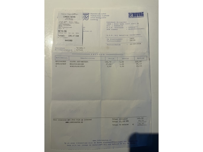 | Wegenbelasting/3mnd | € 119 - € 129 |