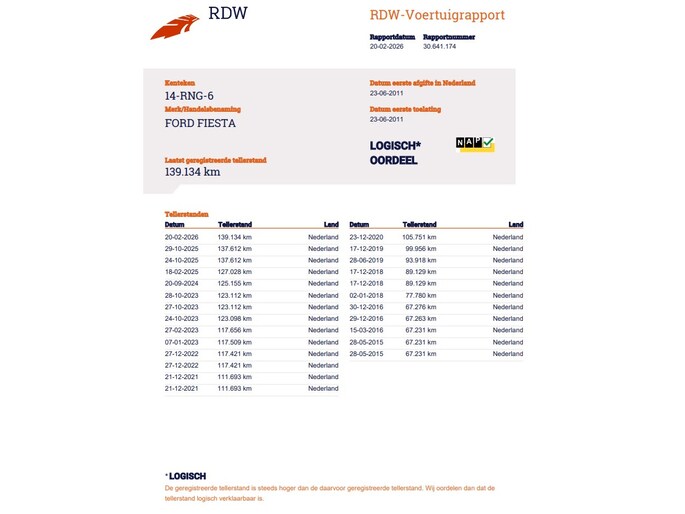 Kilometerstand gecontroleerd