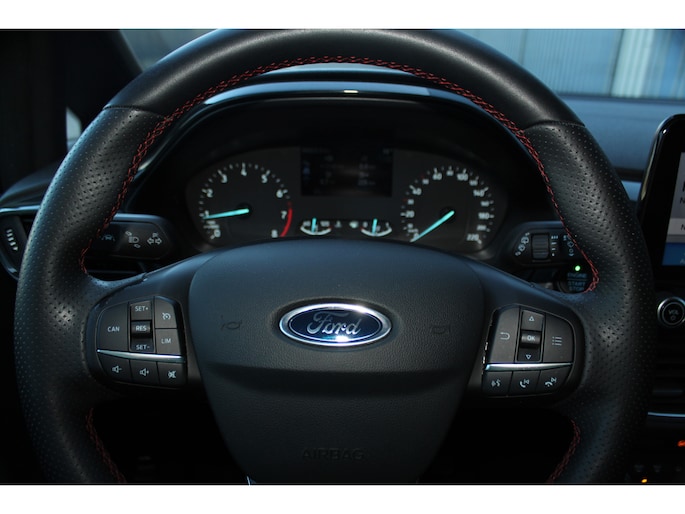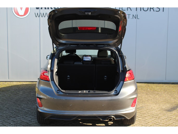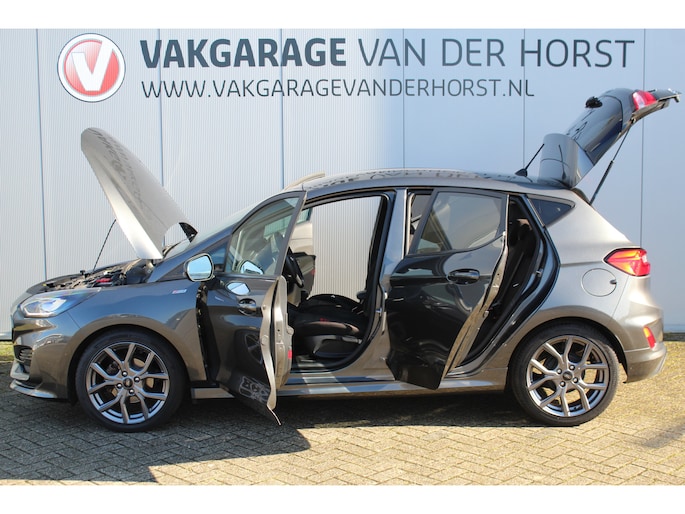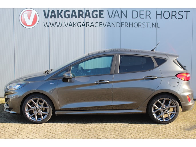 1.0-125pk EcoBoost Mild-Hybrid ST-Line. Luxe, sportieve en goed onderhouden Fiesta ! Autm. airco, Cruise control, Lane assist, 17" Lmv, Parkeersensoren Achter, Metallic lak, Navigatie by Apple/Android, LED verlichting etc.
