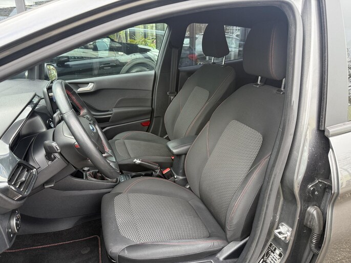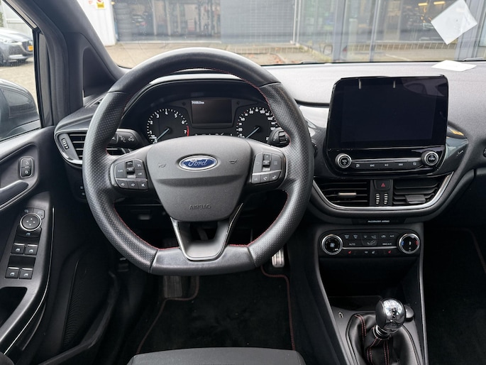 Ontspannen en zorgeloos autorijden, dat doet u met deze Ford Fiesta. Hij heeft een benzinemotor en een handgeschakelde zesversnellingsbak. Scherpe bochten, pittige acceleraties? In de sportstoelen blijft u altijd in positie. De uitmonstering van deze auto wordt gecompleteerd door onder meer 17 inch lichtmetalen velgen, sportonderstel, LED-dagrijverlichting, in delen neerklapbare achterbank en LED-achterlichten.