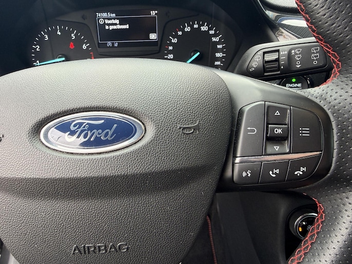 Dankzij Connected Services heeft u overal en altijd uw dashboard op zak. Alle belangrijke functies zijn te checken via de app. Deze Ford is voorzien van spraakbediening voor het audiosysteem met DAB-ontvangst. Maar u kunt ook de knoppen op het stuur gebruiken. Natuurlijk is er ook automatische airconditioning aanwezig. Met de hulp van de parkeersensoren kost inparkeren en uitparkeren u geen enkele moeite. Het luxeniveau in deze Ford is niet alleen gericht op comfort, maar ook op uw veiligheid. Tal van sensoren helpen u om de omgeving in de gaten te houden. De automatisch inschakelbare verlichting zorgt dat automatisch de verlichting wordt ingeschakeld als het donker wordt, wat bijvoorbeeld in tunnels erg handig is. En de regensensor zet de ruitenwissers aan zonder dat u eraan hoeft te denken. En dan is deze auto ook nog eens voorzien van cruise control, sportstuurwiel, automatisch dimmende binnenspiegel, boordcomputer en lederen versnellingspook.