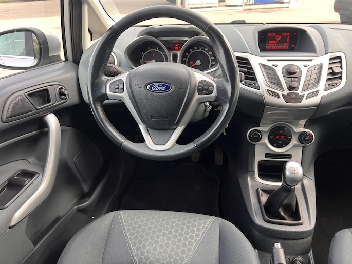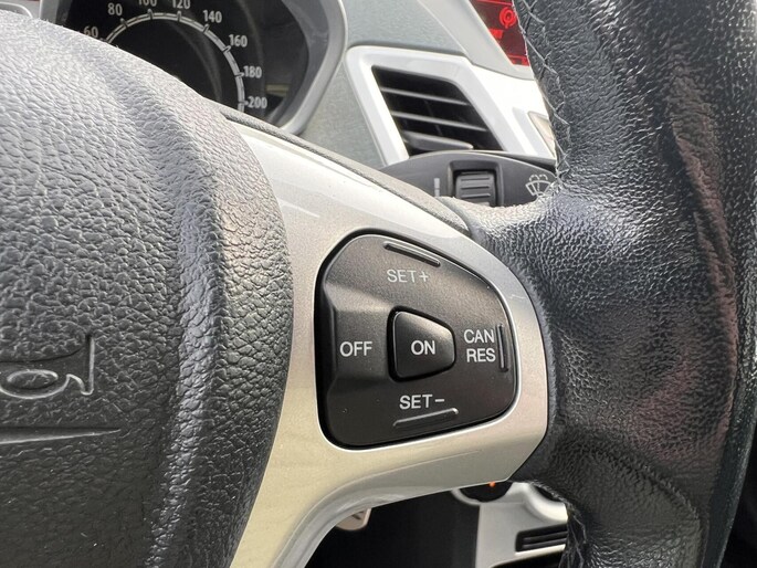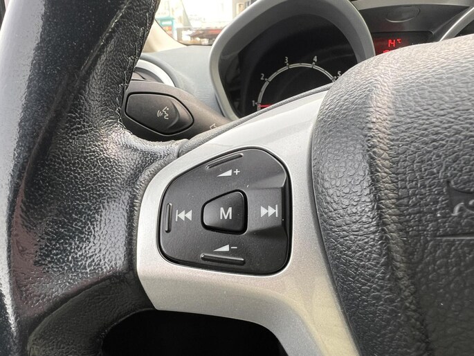 Onderweg kunt u veilig genieten van het audio-installatiesysteem. Want in deze Ford bedient u het vanaf het stuurwiel. Nooit meer te warm of te koud. De automatische airconditioning zorgt altijd voor de temperatuur die u kiest. Een plekje vinden in de binnenstad is één, inparkeren is twee. Voor dat laatste heeft deze Ford Fiesta prima parkeersensoren die u een handje helpen. Om de veiligheid onderweg te verhogen, heeft deze Ford zowel een automatisch inschakelbare verlichting als een regensensor aan boord, zodat hij zelf de verlichting en de ruitenwissers kan inschakelen. De cruise control heeft een feilloos geheugen. Als u even vaart heeft geminderd, bent u na één klik weer op de oude snelheid. Ook automatisch dimmende binnenspiegel, isofix-aansluiting, centrale deurvergrendeling met afstandsbediening en boordcomputer zijn aan boord.
