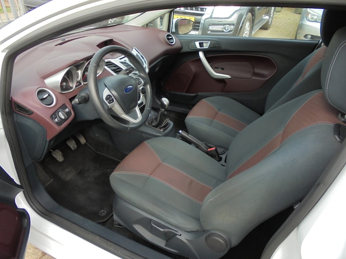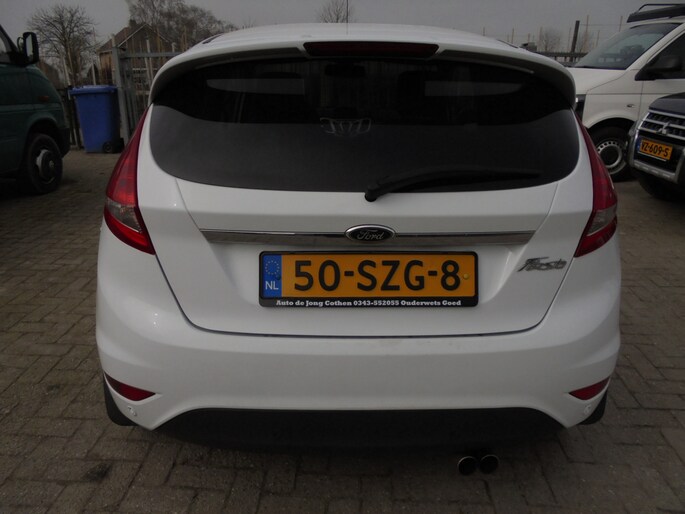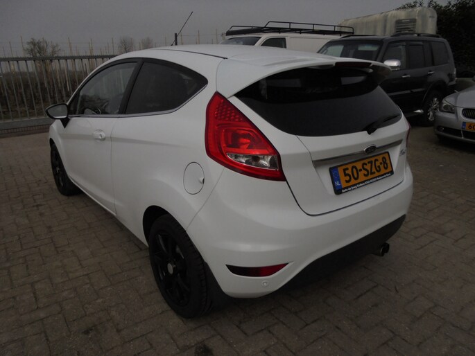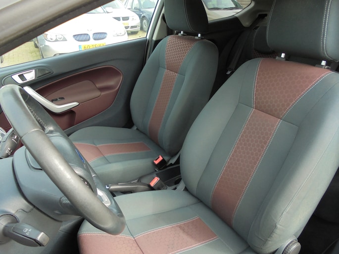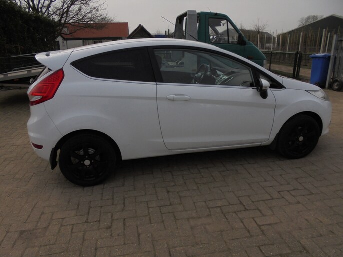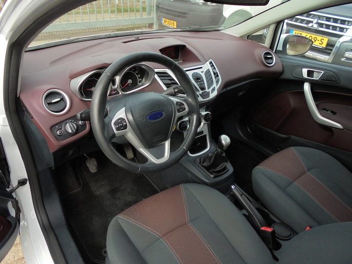 Echt keurige en roestvrije Ford Fiesta 1.25 Titanium van 2012 met een leuke sportieve uitstraling! Rechtstreeks van de eerste eigenaar, deze was zelf decennia lang automonteur en heeft deze Fiesta zelf onderhouden en in bijna nieuwstaat gehouden! Aan alles is te zien dat hij super zuinig op zijn Fordje was. De carrosserie ziet er nog keurig uit en ook het interieur is netjes. Lekker luxe Titanium uitvoering met o.a. Airco, Cruise control, Verwarmbare voorruit, MF-stuur, Lichtsensor, Parkeersensoren achter, Achterspoiler, Buitenspiegels elektrisch inklapbaar, etc. Rijdt heerlijk en sportief. Extra set lichtmetalen velgen met winterbanden. Een degelijke en eerlijke Fiesta zonder gebreken, een aankoopkeuring is dan ook zeker toegestaan! Ja....van deze stoere Ford heb je nog jaren rijplezier!! De prijs is EUR 3950,=. Eventueel met een ouderwets grote beurt en 3 maanden garantie voor EUR 4450,=. Wil je een keertje komen kijken of hij in het echt net zo mooi is als op de foto's?... Bel met 06-21245527 voor een afspraak! Met vriendelijke groet, Leen de Jong.