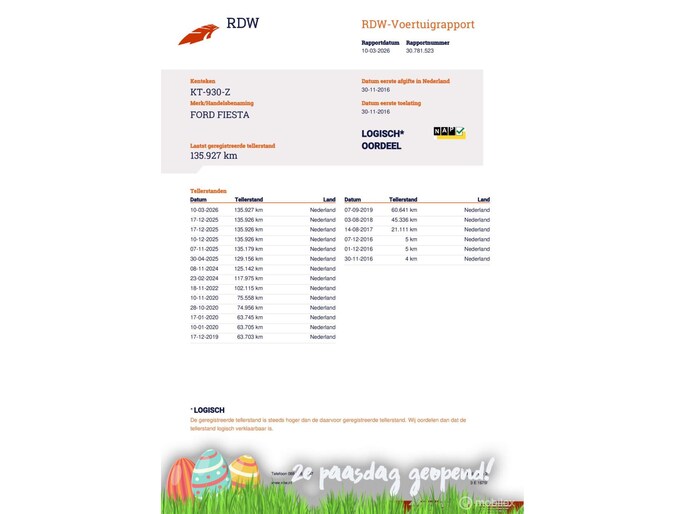 Kilometerstand gecontroleerd
