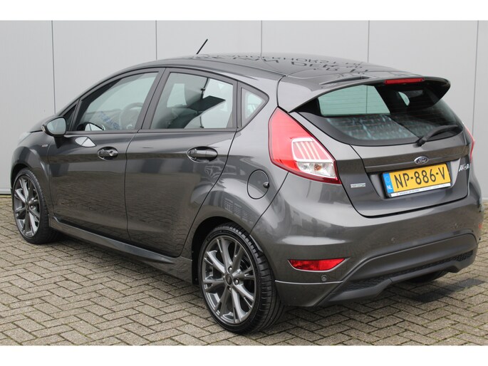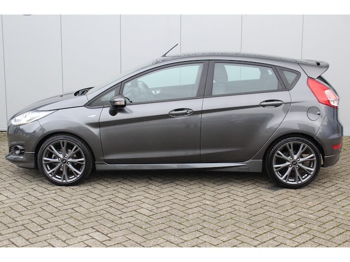 1.0-100pk EcoBoost ST-Line. Erg goed onderhouden Ford Fiesta, van 1e eig. Uitgebreide fotoreportage volgt na poetsen. Airco, LM wielen, voorraamverw., metallic lak, navigatie, telefoonvoorb., cruise control etc.