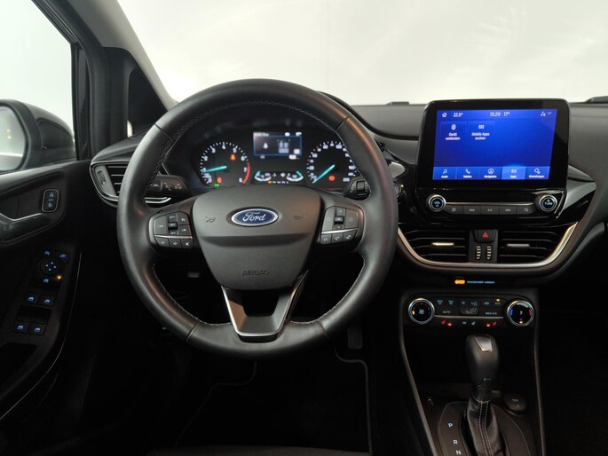 Volop stuurplezier, moderne veiligheidssystemen en up-to-date infotainment. Met deze Ford Fiesta kiest u voor een van de allerleukste auto's in zijn klasse. Met zijn benzinemotor en automatische transmissie is dit een prima auto voor nog vele kilometers. Ziet er goed uit, die sportstoelen. Maar waar het om gaat, is de solide zit onder alle omstandigheden. De uitmonstering van deze auto wordt gecompleteerd door onder meer LED koplampen, extra getint glas, in delen neerklapbare achterbank, LED-achterlichten en snelheidsafhankelijke stuurbekrachtiging.