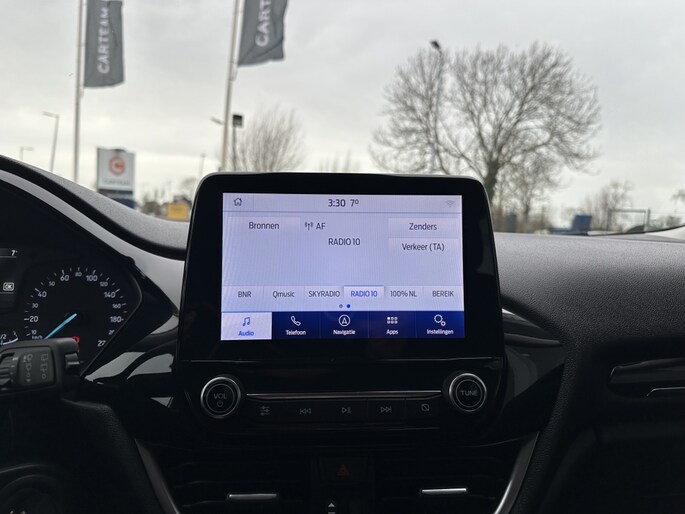 Bij deze auto is uw smartphone een geavanceerde afstandsbediening. Remote services brengen u overal in contact met uw auto. Het audiosysteem met DAB-ontvangst bedient u veilig met knoppen op het stuur of met stemcommando's. De achteropkomend verkeer waarschuwing geeft een signaal als degene achter u te dicht op u zit. Ook handig en veilig bij het wisselen van rijbaan. Parkeersensoren zijn een waardevolle toevoeging aan deze auto. De sensoren waarschuwen tijdens het parkeren en voorkomen schade aan de auto. Ook op de korte stukken is de cruise control een uitkomst. Kijk maar bij de benzinepomp! Deze Ford is voorzien van WIFI-hotspot, airconditioning, boordcomputer en verstelbaar stuur.