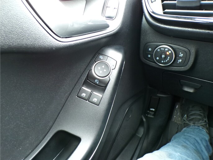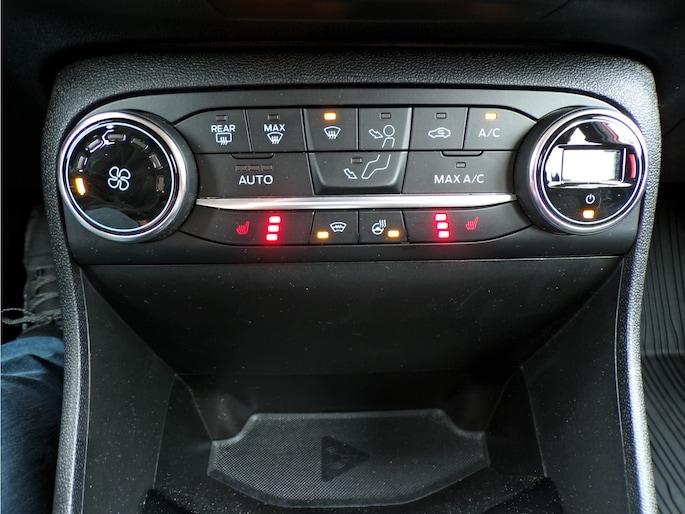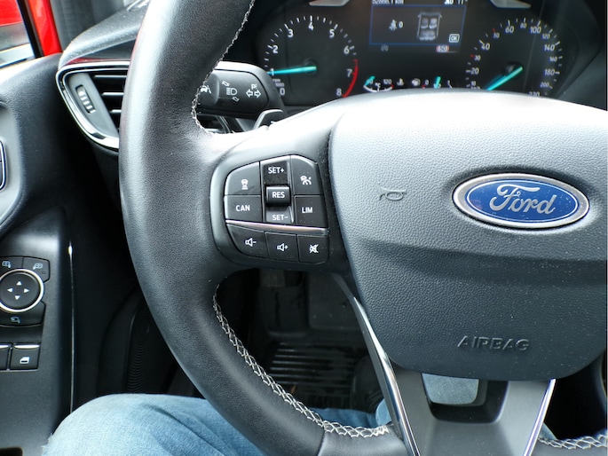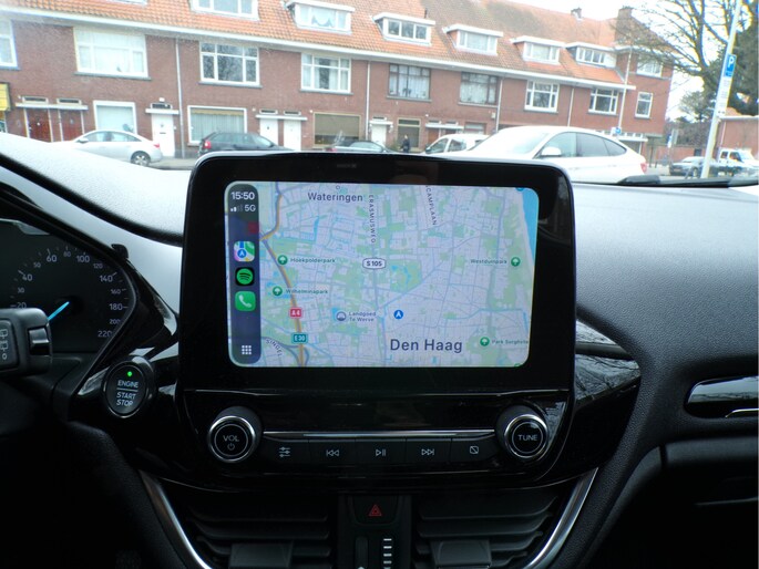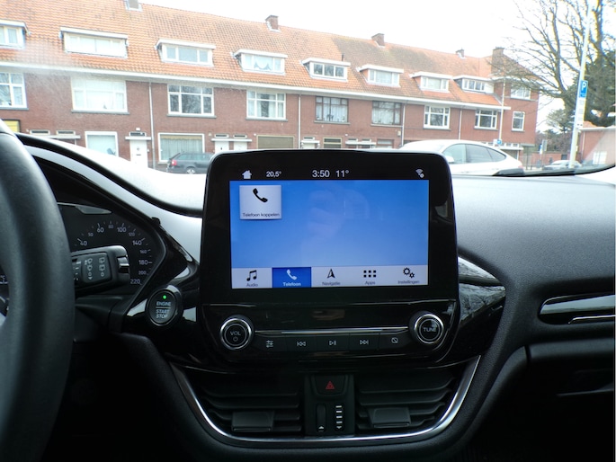 Spraakbediening herkent uw stem en voert opdrachten uit terwijl u beide handen aan het stuur houdt. U weet altijd hoe de auto eraan toe is dankzij Connected Services. Ook handig voor de garage en de wegenwacht. Even de app uitlezen en klaar! Dankzij automatische airconditioning is het interieur behaaglijk warm of verfrissend koel. Voor een storingvrije radio-ontvangst zorgt de ingebouwde DAB-ontvanger. Het drukke verkeer eist onderweg al uw aandacht op. Daarom is het goed dat deze Ford is voorzien van diverse systemen die u assisteren tijdens de rit. Een automatisch inschakelbare verlichting neemt het waar als het donker wordt of gaat schemeren, en schakelt dan automatisch de verlichting in. Op dezelfde manier "ziet" de regensensor de eerste spatjes regen en schakelt dan de ruitenwissers in, en als het harder gaat regenen zet hij de ruitenwissers ook in een snellere stand. Deze Ford is voorzien van schakelpaddles aan het stuur, cruise control, automatisch dimmende binnenspiegel, centrale deurvergrendeling met afstandsbediening en boordcomputer.