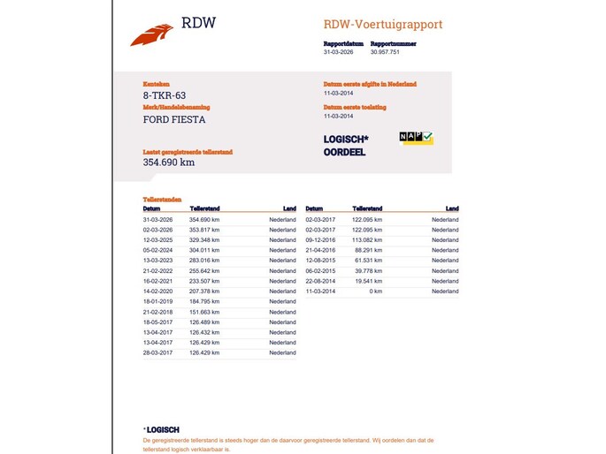 Kilometerstand gecontroleerd