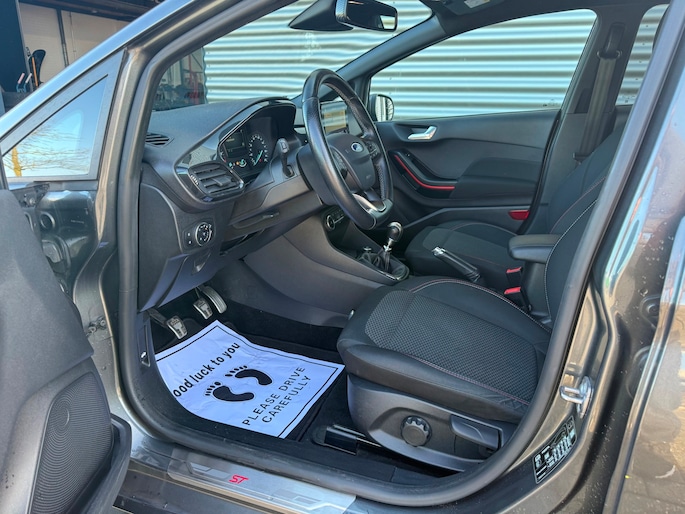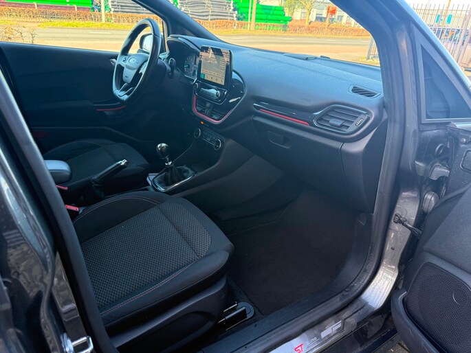 Deze Ford Fiesta komt uit 2018, is voorzien van een benzine-motor, heeft een maximum vermogen van 74 kW (101 PK) en een cilinderinhoud van 998 cc.