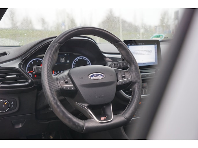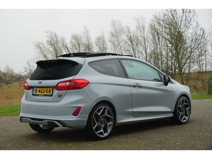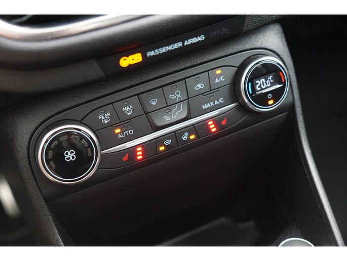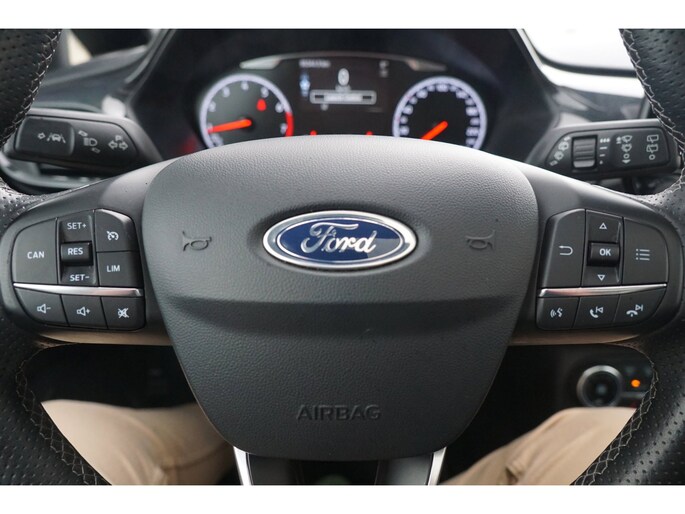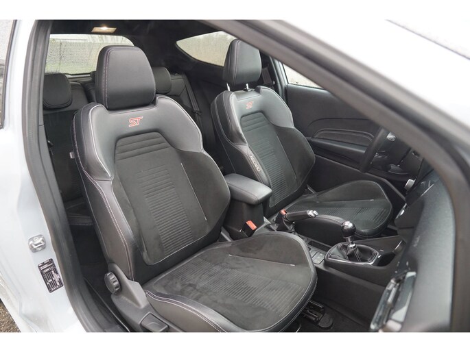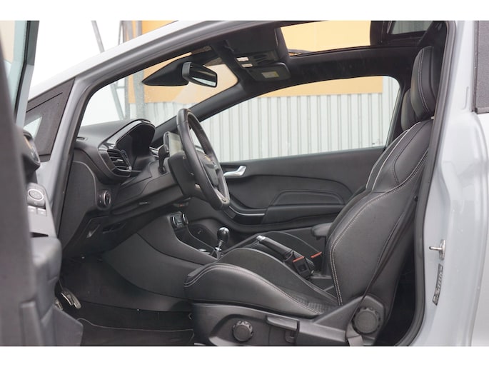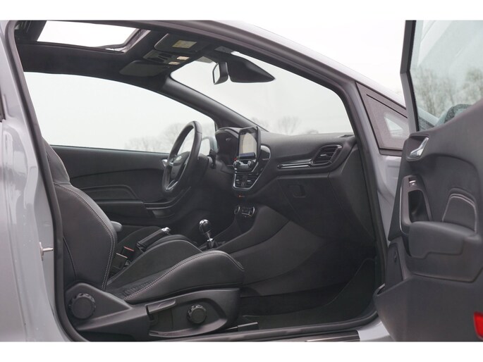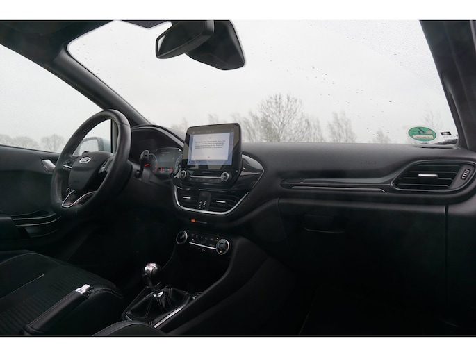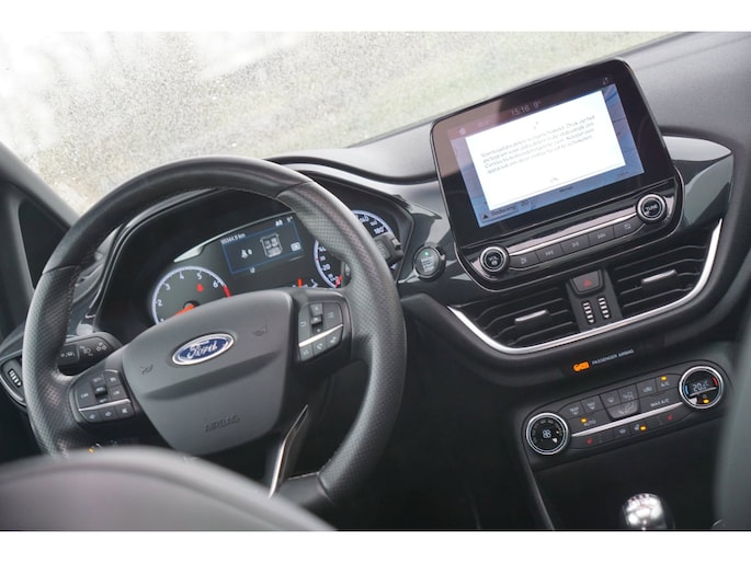 Go Further, is de filosofie van Ford. Een vooruitstrevend motto dat ook bij dit model tot z'n recht komt. Een driecilinder motor en een handgeschakelde zesversnellingsbak zorgen voor de uitstekende prestaties van deze auto. Een weldaad voor u en uw bijrijder: deze Ford Fiesta heeft verwarmbare voorstoelen. Stevig ondersteund door de sportstoelen blijft u bij elke beweging op uw plek. Volop licht en ruimtelijk gevoel geeft het elektrische bediende glazen panoramadak. Nooit meer koude handen of koude vingers in de auto. Stuurverwarming zorgt ervoor dat het stuur behaaglijk warm aanvoelt. Ook 18 inch lichtmetalen velgen, LED koplampen, sportonderstel, halflederen bekleding, extra getint glas en in delen neerklapbare achterbank zijn aan boord.