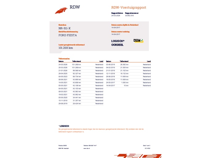 Kilometerstand gecontroleerd
