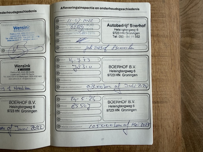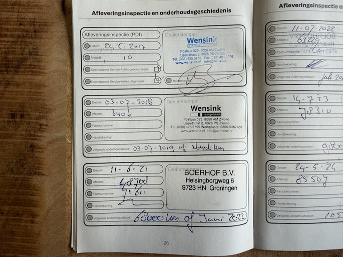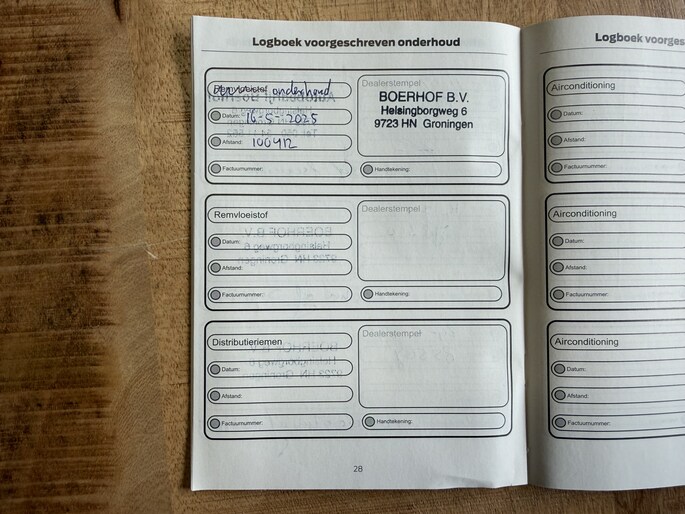 Onderhoudsboekjes: Aanwezig