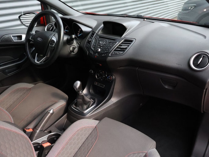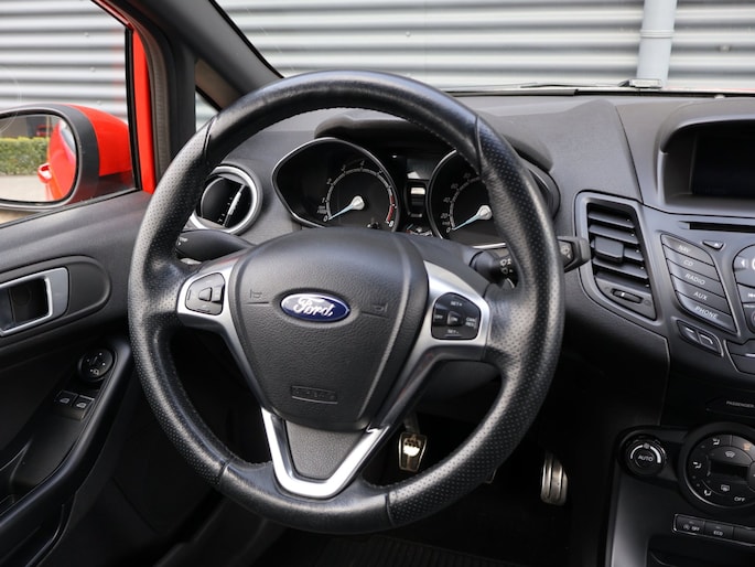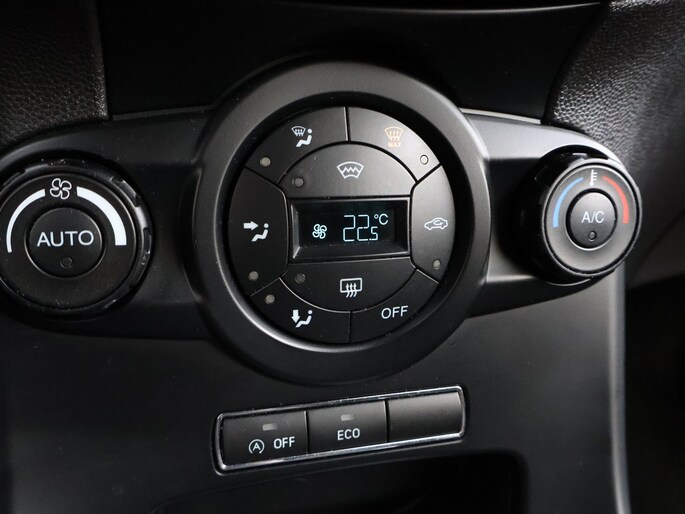 Audiosysteem en navigatiesysteem zijn gecombineerd. Zo wordt zelfs gesproken route-informatie een luisterervaring! En dankzij bluetooth klinkt uw favoriete playlist geweldig. Nooit meer te warm of te koud. De automatische airconditioning zorgt altijd voor de temperatuur die u kiest. Een plekje vinden in de binnenstad is één, inparkeren is twee. Voor dat laatste heeft deze Ford Fiesta prima parkeersensoren die u een handje helpen. De auto neemt u werk uit handen doordat hij zelf veel in de gaten houdt. Een regensensor en een automatisch inschakelbare verlichting nemen waar wanneer de ruitenwissers en het licht aan moeten. Een constante snelheid is goed voor de ontspanning onderweg, en de cruise control zorgt ervoor. Ook dashboard met spraakbediening, automatisch dimmende binnenspiegel, lederen stuur, centrale deurvergrendeling met afstandsbediening, boordcomputer en lederen versnellingspook zijn aan boord.