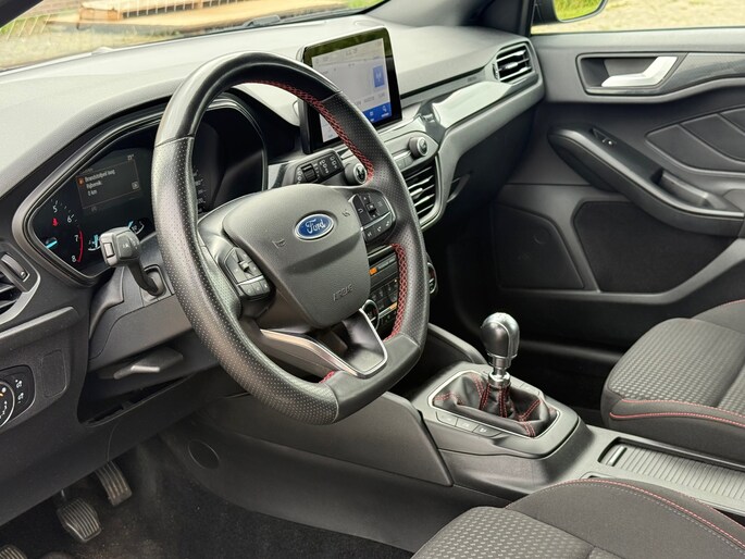 Autojournalisten zijn het er unaniem over eens. De Ford Focus Wagon behoort tot de best sturende auto's van zijn klasse. Ook deze Focus Wagon heeft de uitmuntende rijeigenschappen die u van een Ford mag verwachten. De aandrijving van deze Ford wordt verzorgd door een driecilinder motor en een handgeschakelde zesversnellingsbak. Koude start? Niet met de verwarmbare voorstoelen! De sportstoelen zien er niet alleen prachtig uit, maar zijn ook functioneel, zoals u kilometer na kilometer zult merken. Als de 'r' in de maand zit, komt zo'n verwarmd stuurwiel als geroepen! Tot de uitrusting van deze Ford behoren ook 17 inch lichtmetalen velgen, LED koplampen, sportonderstel, dakspoiler, donker getint glas achter en in delen neerklapbare achterbank.