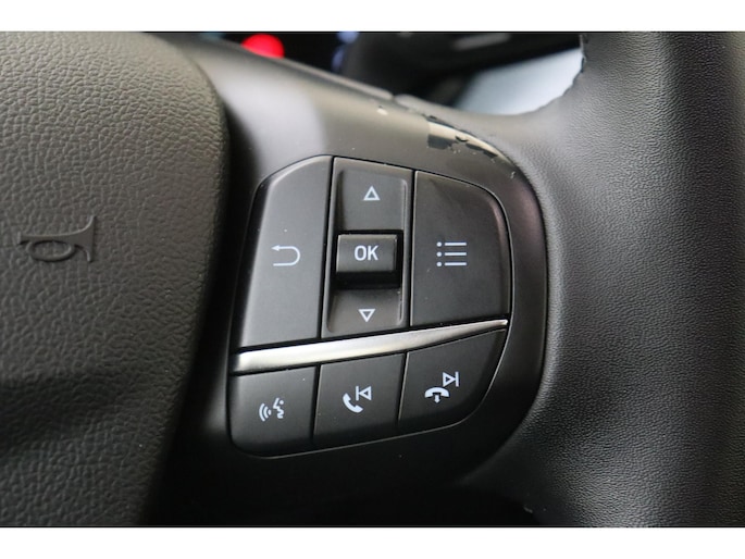 Zelfs een kleine aanrijding kan flinke kosten veroorzaken. Gelukkig laat de achteruitrijcamera precies zien wat er zich achter de auto bevindt en geeft een waarschuwingssignaal. Zo'n lekkere jonge auto heeft natuurlijk leuke extra's, zoals remote services. Met een speciale app maak je overal verbinding met de auto. Zo kan je functies activeren en controleren. Het full map navigatiesysteem en het audiosysteem (met DAB-ontvangst!) bedien je met knoppen op het stuur of met gesproken commando's. De auto is ook uitgevoerd met automatische airconditioning. Het hoort bij een intelligente auto als deze dat hij zelf in staat is om zijn omgeving in de gaten te houden. Dat doet deze Ford met een automatisch inschakelbare verlichting en een regensensor. De uitrusting van deze auto is met cruise control, keyless entry, automatisch dimmende binnenspiegel, boordcomputer en lederen versnellingspook behoorlijk compleet.