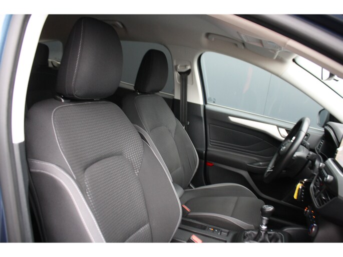 Zoals u mag verwachten van deze Ford Focus Wagon is hij uitgerust met een reeks aan actieve veiligheidssystemen. Onbedoeld buiten de rijstrook raken wordt voorkomen door het Lane-keeping systeem. Het forward collision warning-systeem is constant alert en detecteert via sensor de afstand tot voorliggers. Wordt die te klein, dan volgt een automatische waarschuwing. In deze Ford vinden we verder een hill hold functie, brake assist en bandenspanningcontrolesysteem.