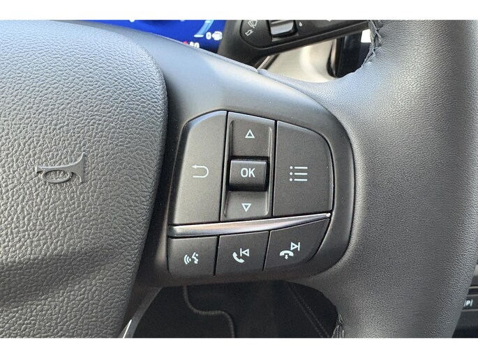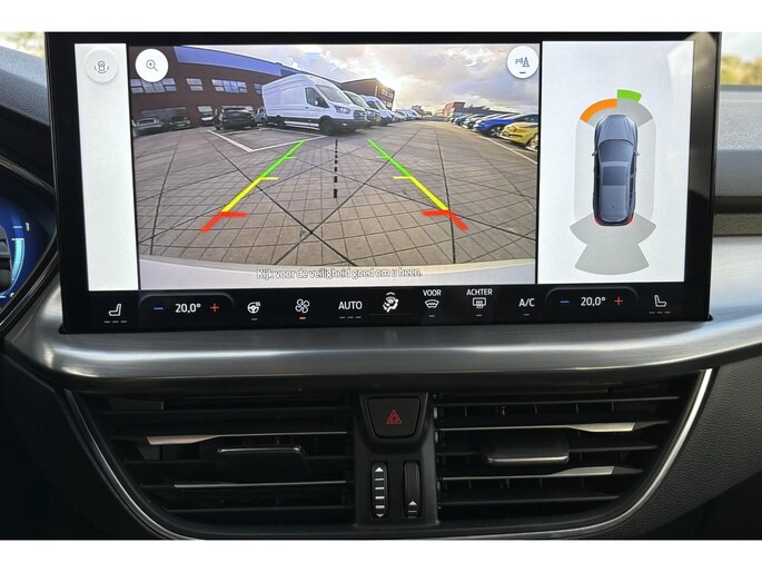 De slimme lay-out van het digitale dashboard zorgt voor een uitstekend overzicht onderweg. Kommaar-kommaar-kommaar, aldus de achteruitrijcamera. Iedere centimeter vrije ruimte komt haarscherp in beeld. Schadevrij inparkeren maar! Smakelijke subs en knisperend hoog: het high performance audiosysteem geeft elke frequentie een kwaliteitsbehandeling voor akoestisch genieten onderweg. Onderweg de smartphone opladen gaat helemaal zonder snoeren, door de draadloze telefoonlader. Tot de standaard uitrusting van deze auto hoort ook automatische airconditioning. Met full map navigatiesysteem, cruise control, keyless entry, automatisch dimmende binnenspiegel en bagage afdekhoes is deze Ford helemaal compleet.