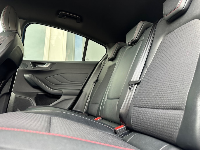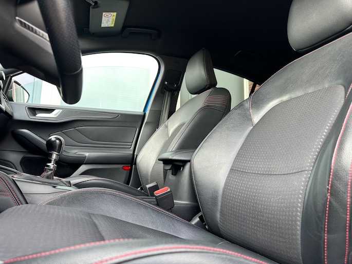 Prachtige uitvoering in top kleur! Nederlandse Focus Ecoboost ST voorzien van parkeersensoren voor en achter, B&O geluid, navigatie, achteruitrijcamera, stoelverwarming, leder en NAP.