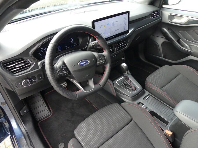 Van uw nieuwe auto verlangt u rijplezier, maar ook optimaal comfort en veiligheid. Daarom is de Ford Focus Wagon de auto die u zoekt. Met zijn benzinemotor en automatische transmissie is dit een prima auto voor nog vele kilometers. Boven uw hoofd schuiven de wolken zichtbaar voorbij door het elektrisch bediende glazen panorama dak. En kijk eens aan de achterzijde wat gemakkelijk: een eveneens elektrisch bedienbare achterklep! Bestuurder en bijrijder krijgen een warm welkom: deze Ford Focus Wagon is voorzien van verwarmbare voorstoelen. Natuurlijk zijn de sportstoelen super functioneel als het rechterpedaal ingetrapt wordt. Maar ook voor het uiterlijk doen ze veel! Koude handen? Da's voorbij met het verwarmd stuurwiel. Pak aan! De uitmonstering van deze auto wordt gecompleteerd door onder meer 18 inch lichtmetalen velgen, Full LED koplampen, sportonderstel, geluidsisolerende ramen, in delen neerklapbare achterbank en LED-achterlichten. Dankzij het digitale dashboard in deze auto kan u de interface van uw cockpit personaliseren. Een handige optie is de achteruitrijcamera. Achteruitrijden, inparkeren en manoeuvreren gaat gemakkelijker dan ooit. Met adaptive cruise control houdt de auto zelfstandig afstand tot uw voorligger. Een veiligheidsverhogende optie waarmee u comfortabel onderweg bent. De radio harder of zachter zetten of iemand uit uw contactenlijst bellen. Dankzij de spraakbediening doet u dit allemaal met uw stem. Via uw smartphone en Connected Services checkt u eenvoudig de belangrijke functies van de auto, overal en altijd. De uitrusting van deze Ford is met premium audiosysteem, full map navigatiesysteem, achteropkomend verkeer waarschuwing, automatische airconditioning, draadloos opladen en DAB ontvangst behoorlijk compleet. Zoals u mag verwachten van deze Ford Focus Wagon is hij uitgerust met een reeks aan actieve veiligheidssystemen. Tijdens de rit hebt u altijd een bijrijder, want de verkeersbord-detectie leest de borden langs de weg en projecteert ze voor u op het instrumentarium. Met het Lane-keeping systeem gaat u nooit onbedoeld over de streep. De sensor van het forward collision warning-systeem registreert permanent de afstand tot voorliggers en grijpt in als een botsing dreigt. Bovenop deze veiligheidsfeatures heeft deze Ford bovendien dodehoekdetectie, hill hold functie, brake assist, vermoeidheidsherkenning en bandenspanningcontrolesysteem. Laat het ons meteen weten als u interesse heeft in deze auto, dan kunnen we een afspraak maken om u de auto te demonstreren.